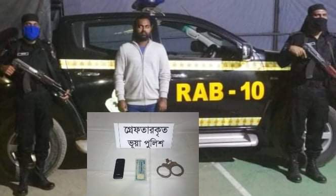 RAB 10 এর জালে একজন ভুয়া পুলিশ গ্রেফতার।
