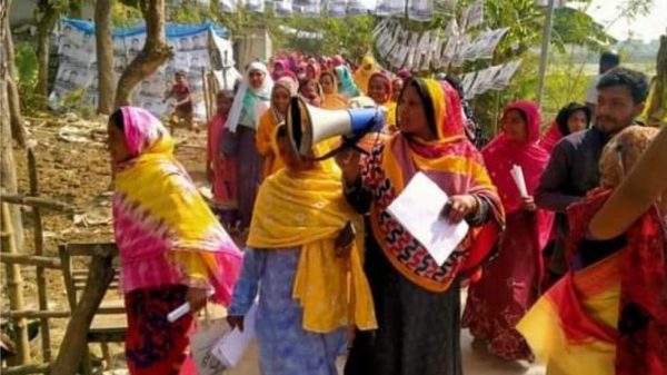 শিবগঞ্জে নৌকার মাঝি ওয়ার্ডে ওয়ার্ডে নারীদের গণসংযোগ ও লিফলেট বিতরণ।