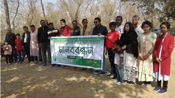 ভূমি দস্যুদের হাত থেকে বাবুডাইং রক্ষার দাবীতে মানববন্ধন।